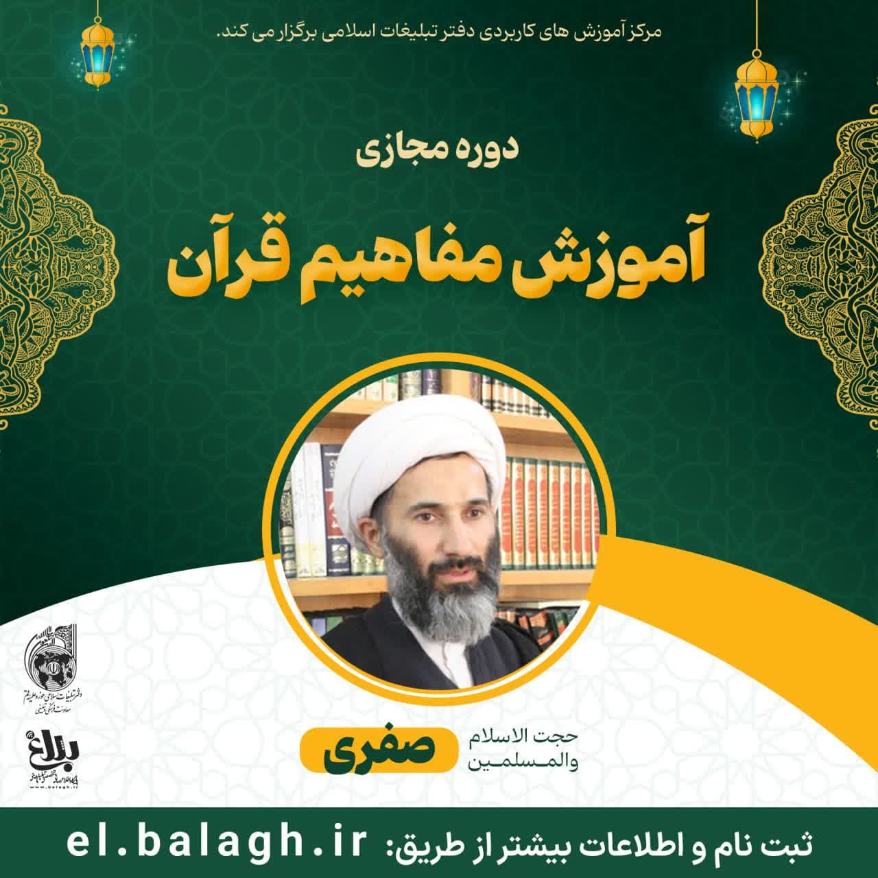 مرکز آموزش های کاربردی معاونت فرهنگی و تبلیغی دفتر تبلیغات اسلامی حوزه علمیه قم، دوره مجازی «آموزش مفاهیم قرآن» را برگزار می کند.