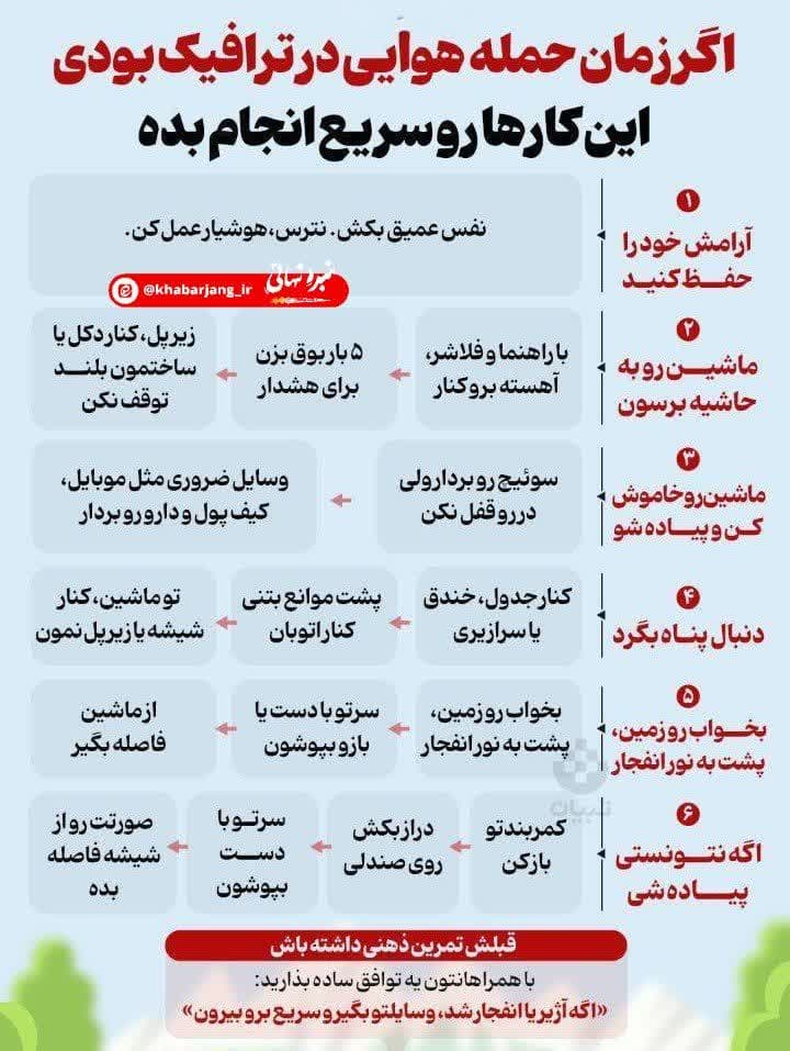 اگر زمان حمله هوایی در ترافیک بودی این کار ها را سریع انجام بده تاریخ انتشار: 16:18 - 1404/03/30 اگر زمان حمله هوایی در ترافیک بودی این کار ها را سریع انجام بده روایت صادق حفاظت اطلاعات توصیه های ایمنی روایت صادق دفتر تبلیغات اسلامی جنگ توصیه افزودن دیدگاه جدید نام شما دیدگاه درباره قالب های متنی متن ساده تگهای HTML مجاز نیستند. خطوط و پاراگرافها بطور خودکار اعمال میشوند. آدرس های صفحه وب و آدرس های ایمیل به طور خودکار به پیوند تبدیل می شوند.