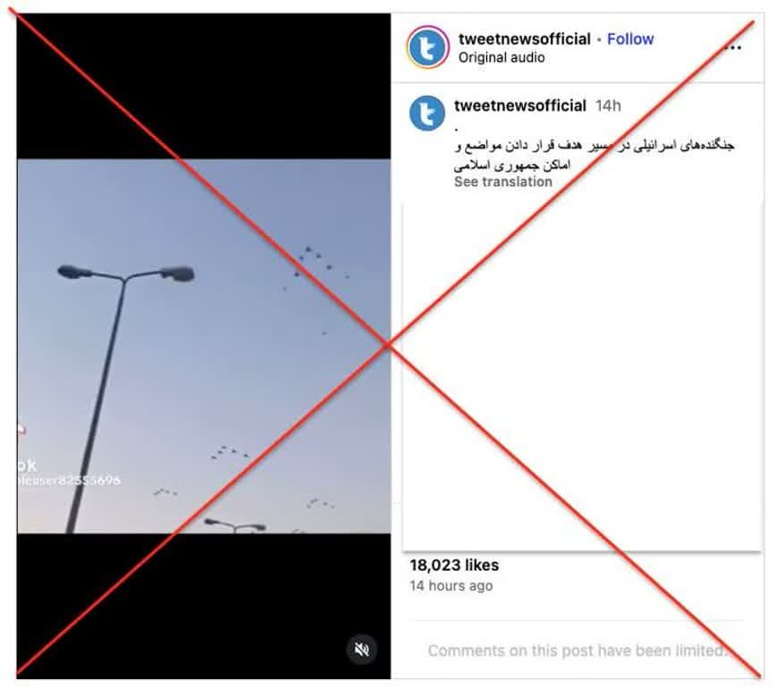 🔹 در شبکههای اجتماعی ویدئویی از پرواز گروهی تعداد زیادی جنگنده منتشر و ادعا شده است: «جنگندههای اسرائیلی در مسیر هدف قرار دادن مواضع و اماکن جمهوری اسلامی.»
