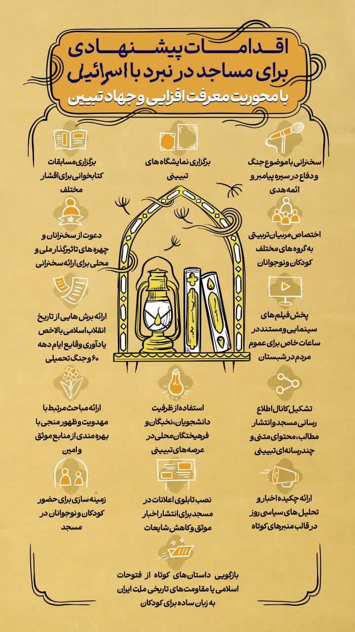 اقدامات پیشنهادی برای مساجد در نبرد با رژیم صهیونیستی با محوریت بصیرت افزایی و جهاد تبیین تاریخ انتشار: 16:12 - 1404/04/10 اقدامات پیشنهادی برای مساجد در نبرد با رژیم صهیونیستی با محوریت بصیرت افزایی و جهاد تبیین روایت صادق اتاق عملیات مجاهد فرهنگی واحد بسیج عمومی روایت صادق دفتر تبلیغات اسلامی ایده اقدامات پیشنهادی برای مساجد افزودن دیدگاه جدید نام شما دیدگاه درباره قالب های متنی متن ساده تگهای HTML مجاز نیستند. خطوط و پاراگرافها بطور خودکار اعمال میشوند. آدرس های صفحه وب و آدرس های ایمیل به طور خودکار به پیوند تبدیل می شوند.