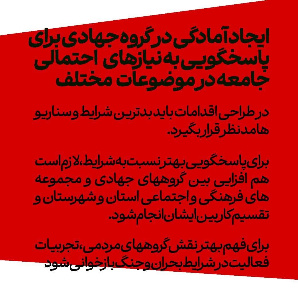 🔻آمادگی گروه جهادی برای پاسخگویی نیازهای احتمالی جامعه