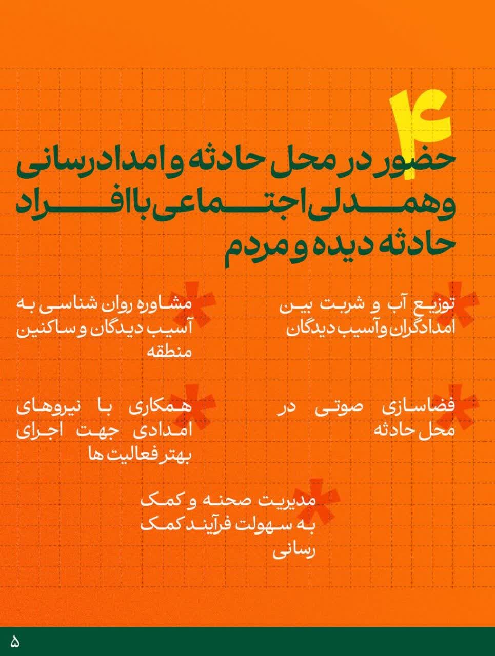 🔺 حضور در محل حادثه و امدادرسانی و همدلی اجتماعی با افراد حادثه دیده و مردم