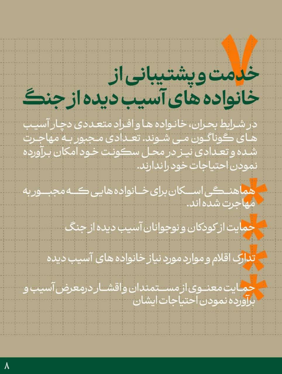🔺 خدمت و پشتیبانی از خانوادههای آسیبدیده از جنگ