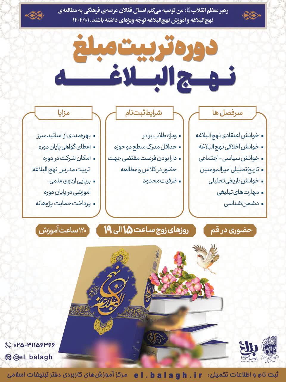 دوره حضوری تربیت مبلغ نهج البلاغه برگزار می شود