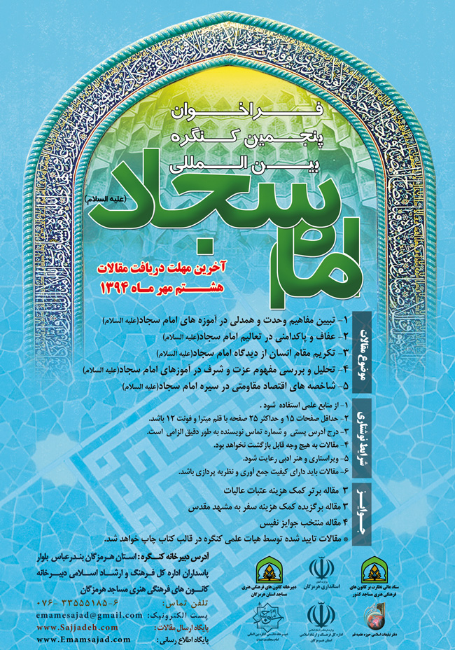 گفتنی است؛ کنگره بین المللی امام سجاد(علیه السلام) از پنج سال پیش، هرساله در سالروز شهادت این امام همام(25 محرم الحرام) به همت دبیرخانه کانون های فرهنگی هنری مساجد هرمزگان و با حمایت ستاد عالی نظارت بر کانون های مساجد کشور، استانداری هرمزگان، اداره کل فرهنگ و ارشاد اسلامی و با همکاری سایر دستگاه های فرهنگی برگزار می شود.